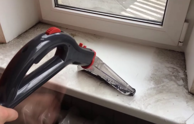 На первом этапе мойки окон мы убираем основную грязь сухой микрофиброй или при помощи пылесоса. Особенно это актуально после строительных работ либо в запущенных ситуациях, когда не только пыль, но и песок скапливается в проемах оконных рам и на стыках профиля. Иногда сухая уборка не требуется, в том случае если это витрина или глухое окно, в котором просто негде скапливаться мусору. Обязательной процедурой будет предварительная уборка внутреннего и внешнего подоконника окна, т.к. при открытом окне сквозьняк может нанести скопившуюся там пыль на только что вымытое окно.
